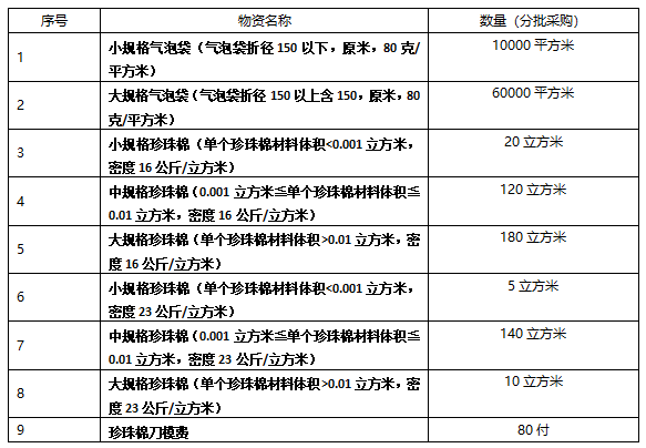 (三)項目內(nèi)容:福建龍溪軸承(集團(tuán))股份有限公司計劃采購氣泡袋、珍珠棉。